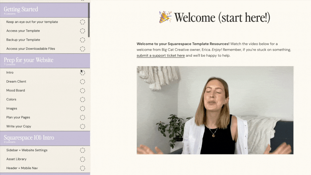With every Big Cat Creative template, you’re not just buying the (admittedly gorgeous) design. You’re getting access to a full system that walks you through everything from setup to launch. It's basically a Squarespace course built in 👩🏻🎓